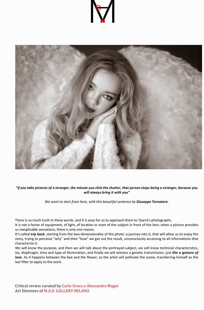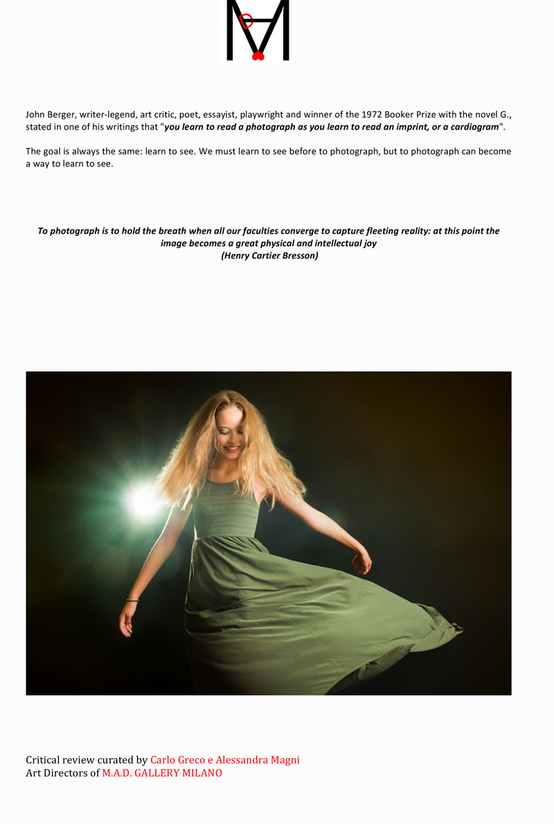 Een verrassing via de e-mail, want naar aanleiding van de foto’s die op dit moment geëxposeerd worden, hebben de curatoren van M.A.D. Gallery uit Milaan een “critical review” geschreven.