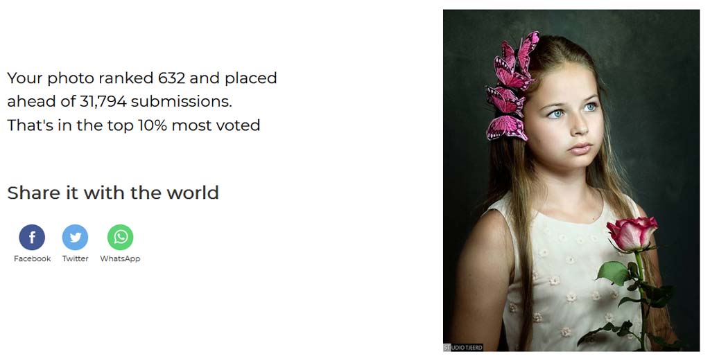 Voor elke fotowedstrijd op ViewBug geldt een zekere termijn waarop het publiek kan stemmen op de foto’s. Als die termijn voorbij is, komt er in de e-mail een berichtje met hoe de foto’s het “gedaan” hebben en dit keer was het onderwerp: “StudioTjeerd, how did you rank in The Photo Art Project Photo Contest?”.