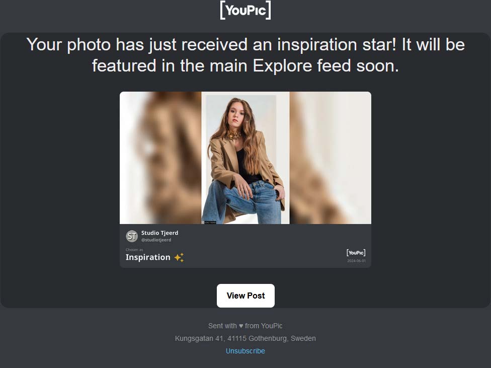 Een foto van Anoeks 13e fotoshoot uit 2024 heeft op YouPic de status Inspiration gekregen. Het is nu de 464e foto die deze status heeft gekregen.