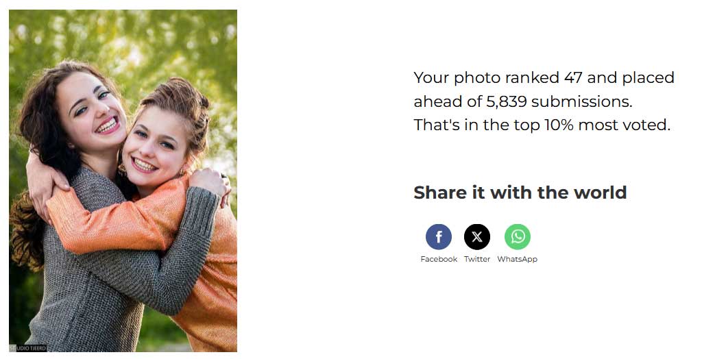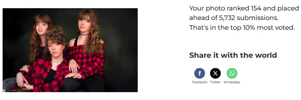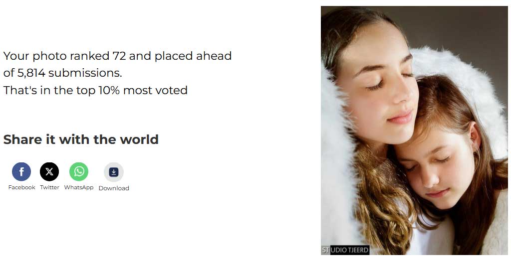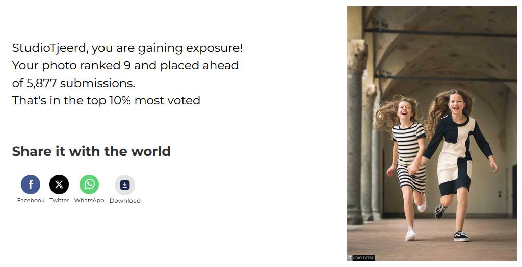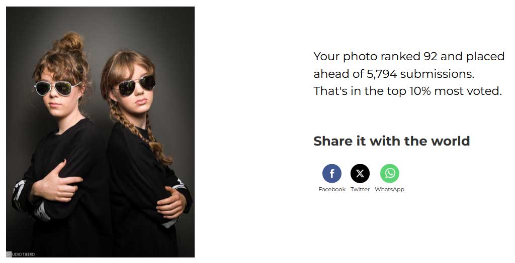 Voor elke fotowedstrijd op ViewBug geldt een zekere termijn waarop het publiek kan stemmen op de foto’s. Als die termijn voorbij is, komt er in de e-mail een berichtje met hoe de foto’s het “gedaan” hebben en dit keer was het onderwerp: “StudioTjeerd, how did you rank in Better Together Photo Contest?”.