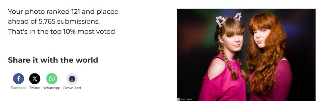 Daarmee behoort de foto tot de afgerond 1,56% foto’s waarop door het publiek het meest is gestemd.