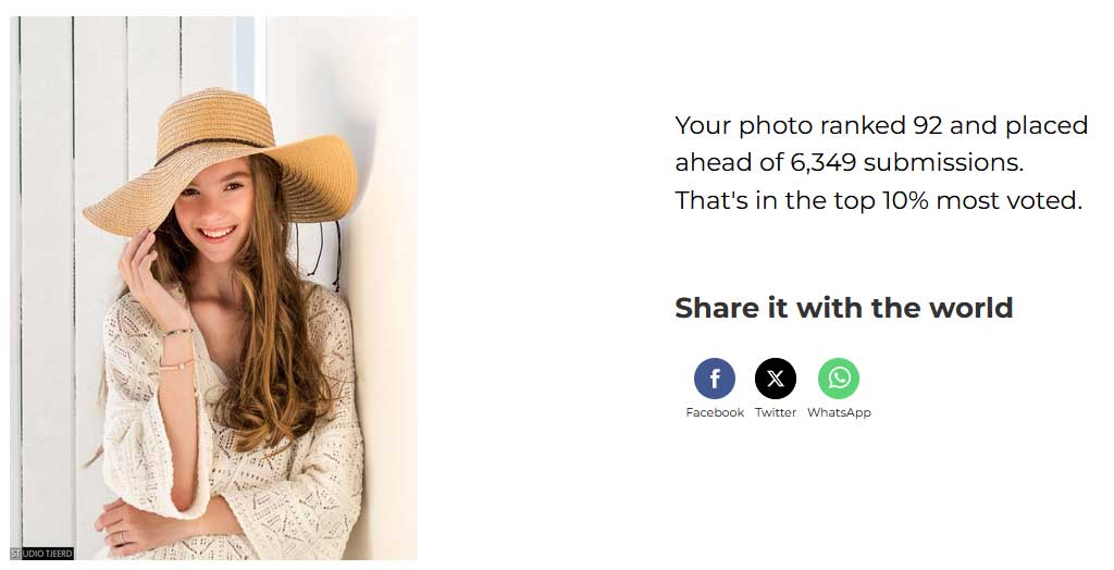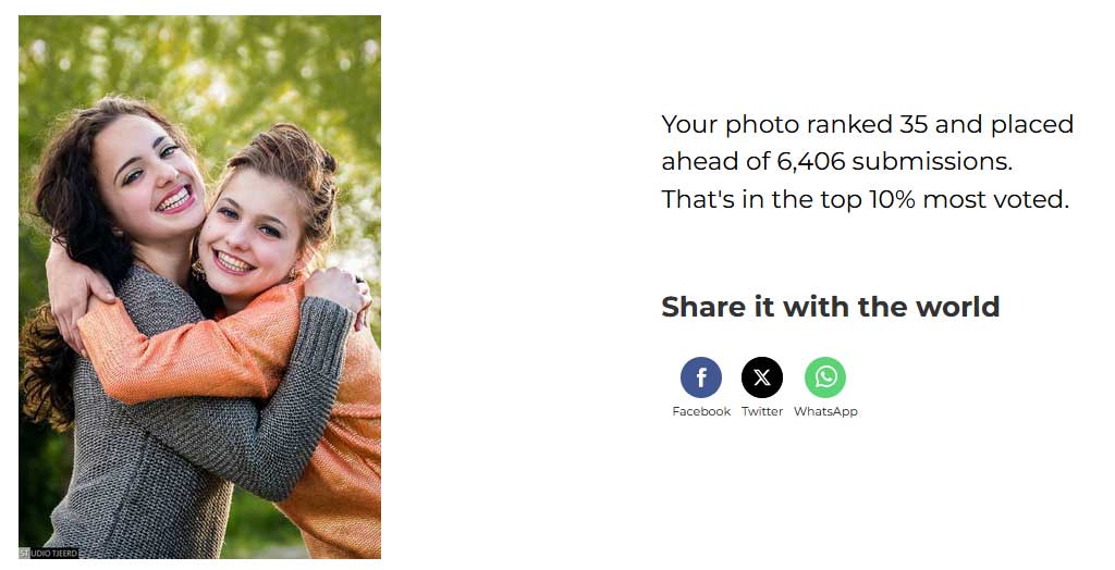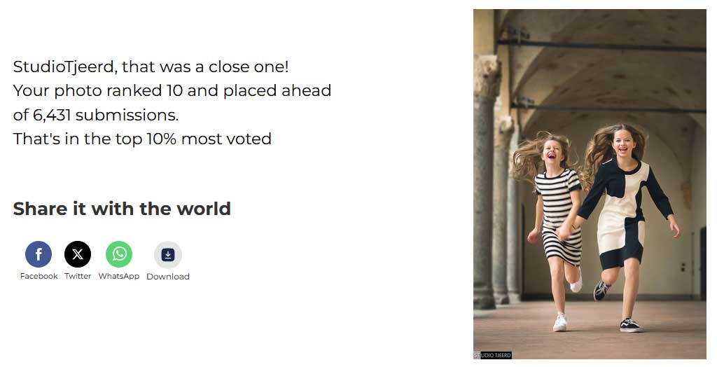Voor elke fotowedstrijd op ViewBug geldt een zekere termijn waarop het publiek kan stemmen op de foto’s. Als die termijn voorbij is, komt er in de e-mail een berichtje met hoe de foto’s het “gedaan” hebben en dit keer was het onderwerp: “StudioTjeerd, how did you rank in Capture Smiles Photo Contest?”.