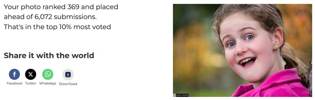 Daarmee behoort de foto tot de afgerond 5,72% foto’s waarop door het publiek het meest is gestemd.
