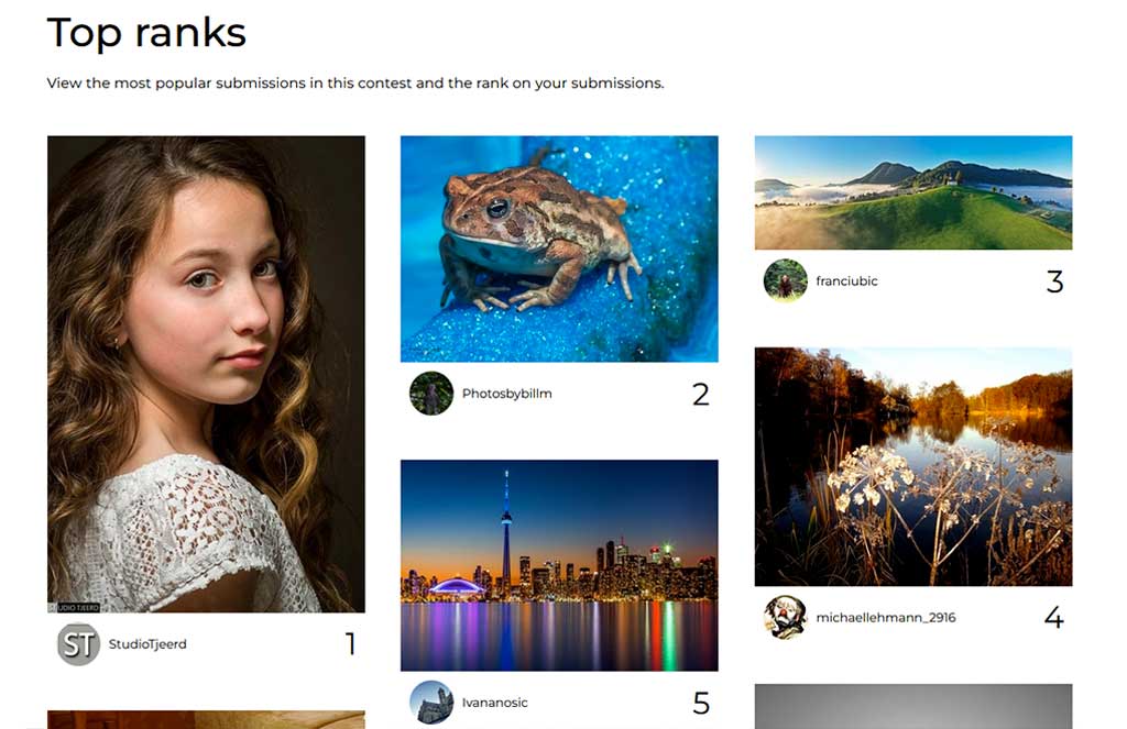 Alle ingezonden foto’s eindigden in de top 10% van de inzendingen waarop het meest door het publiek gestemd is.