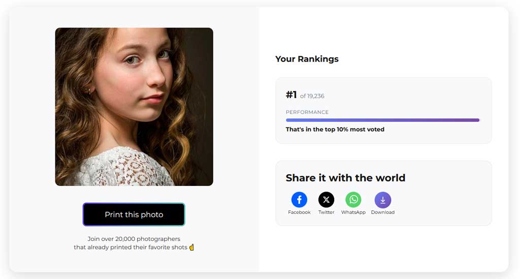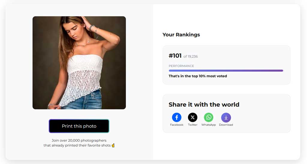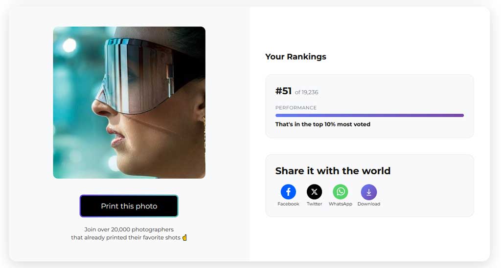 Zodra de stemronde is gesloten, ontvang ik een e-mail met de prestaties van mijn ingezonden foto’s.