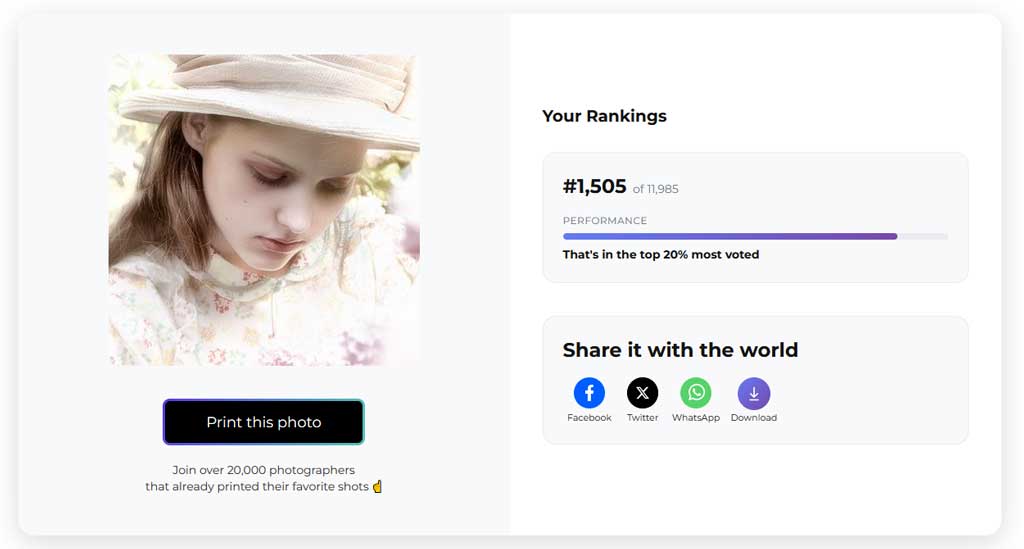 Bij de einduitslag van de publieksstemmen bleek dat de foto op een 1.505e plaats terecht was gekomen.
