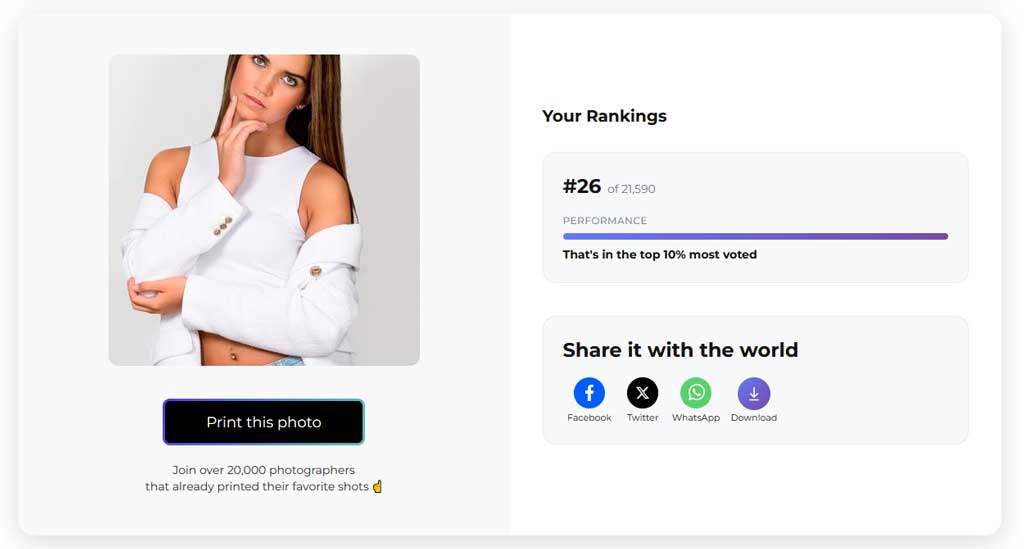Met een 1e plaats van in totaal 21.590 inzendingen, behoort de foto tot de afgerond 0,005% foto’s waarop door het publiek het meest is gestemd.