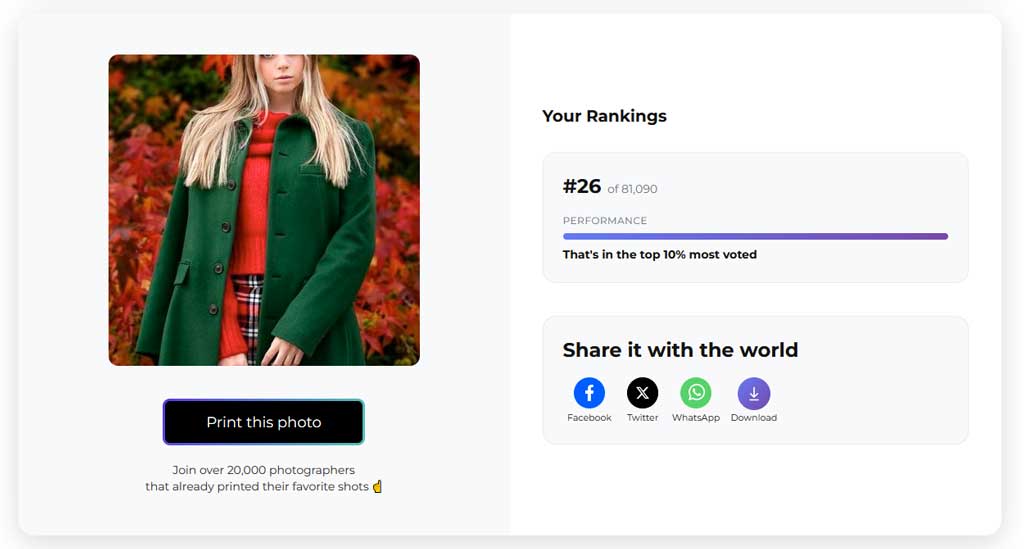 Met een 1e plaats van in totaal 81.090 inzendingen, behoort de foto tot de afgerond 0,001% foto’s waarop door het publiek het meest is gestemd.