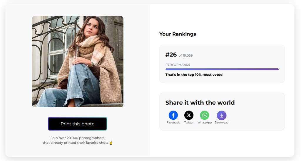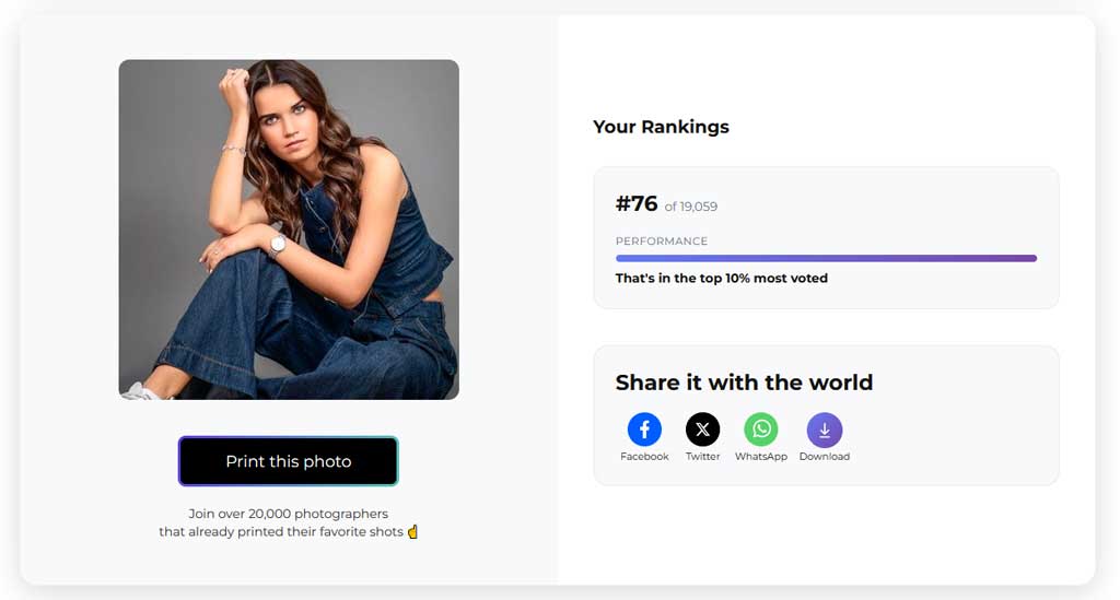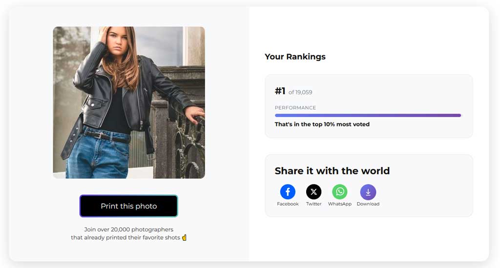Met een 1e plaats van in totaal 19.059 inzendingen, behoort de foto tot de afgerond 0,005% foto’s waarop door het publiek het meest is gestemd.