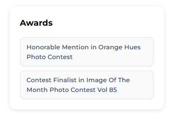 Sinds dat er vanaf oktober 2015 foto’s worden ingeschreven voor fotowedstrijden op de website van ViewBug, is er een inmiddels indrukwekkende lijst met featured foto’s (en finaleplaatsen) ontstaan, zoals te zien is op de onderscheidingen pagina op deze site.