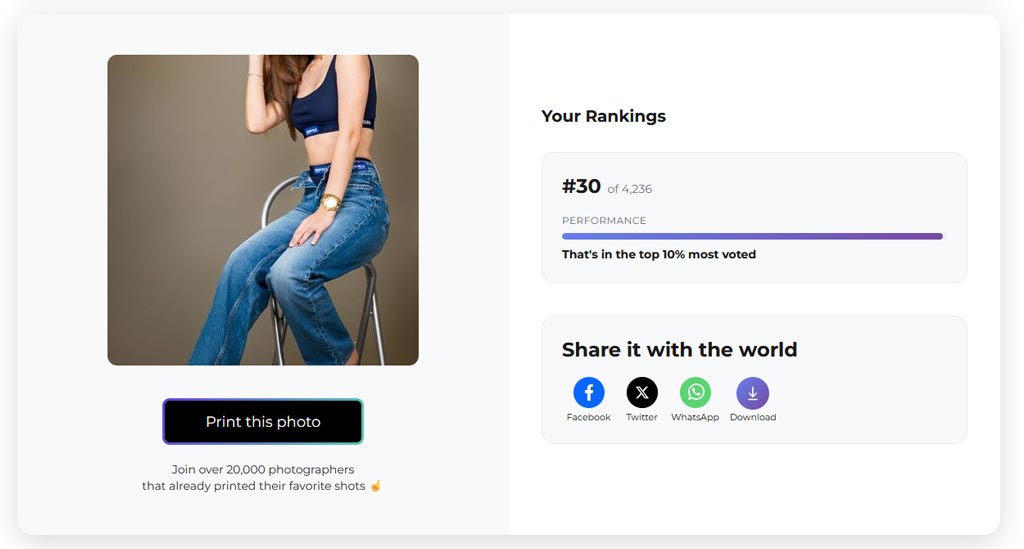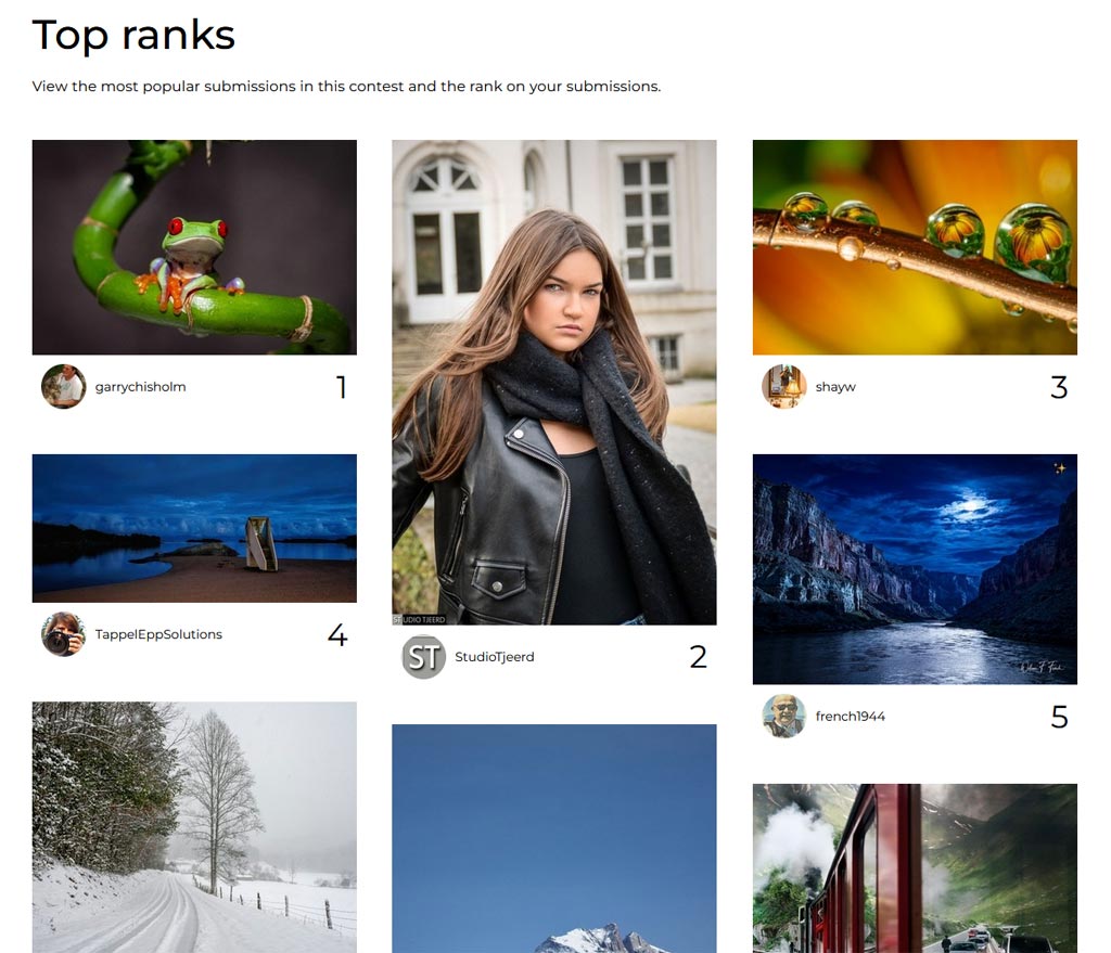 Een Top Class ranking betekent dat de foto bij de Top 10%, Top 20% of Top 30% behoort waarop gedurende de stemperiode van de specifieke wedstrijd het meest is gestemd.