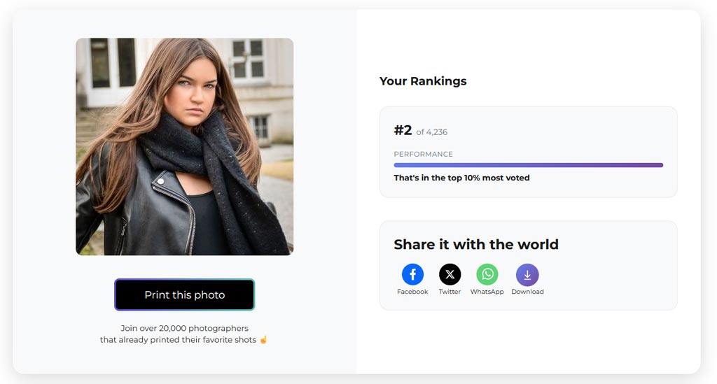 Met een 2e plaats van in totaal 4.236 inzendingen, behoort de foto tot de afgerond 0,05% foto’s waarop door het publiek het meest is gestemd.